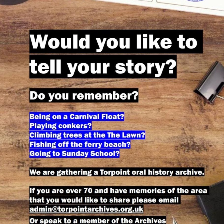 As part of our oral history project, we are currently looking for Torpointers to share their memories of living in our town. If you, or anyone you know would like to take part in an interview within the comfort of your own home, please get in touch.