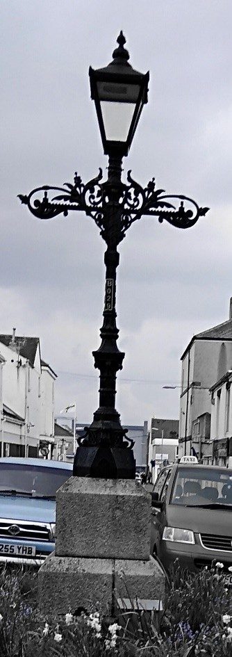 You may be interested to know that the wrought iron “light” outside St James Church is usually referred to as the “Three Lighter” It was presented to the town by the Pole Carew family c.1900 in gratitude for the safe return of Sir Reginald.